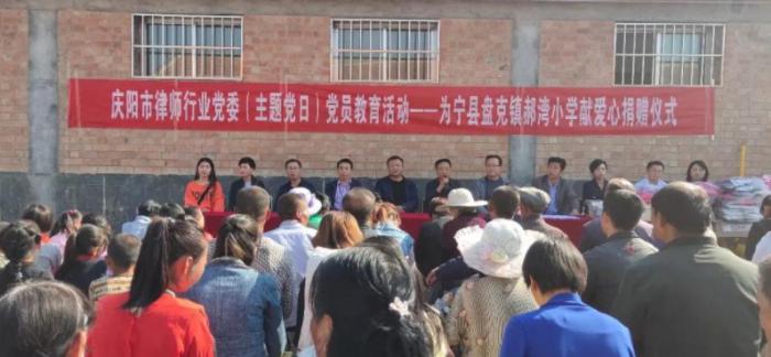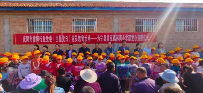 2019年9月27日,庆阳市律师行业党委在认真开展“不忘初心、牢记使命”主题教育之际,组织行业党委委员及部分党员律师代表赴庆阳市市司法局对口帮扶村宁县盘克镇郝湾小学,开展“主题党日—帮扶助学献爱心”公益活动。
