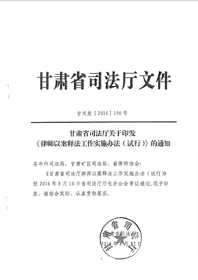 甘司发〔2016〕190号甘肃省司法厅关于印发《律师以案释法工作实施办法(试行)》的通知